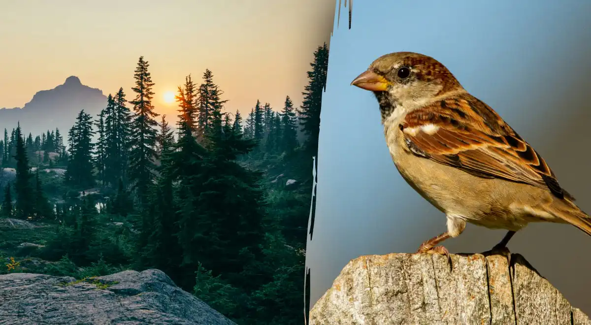 Ένα μικρό σπουργίτι έχει κρυφτεί στο ορεινό τοπίο και η πρόκληση είναι να το εντοπίσετε σε μόλις 7 δευτερόλεπτα. Το κλειδί είναι να εστιάσετε στα μικρά, ασυνήθιστα σχήματα που διακόπτουν το φυσικό μοτίβο των κλαδιών και των πέτρων.