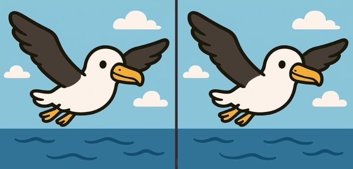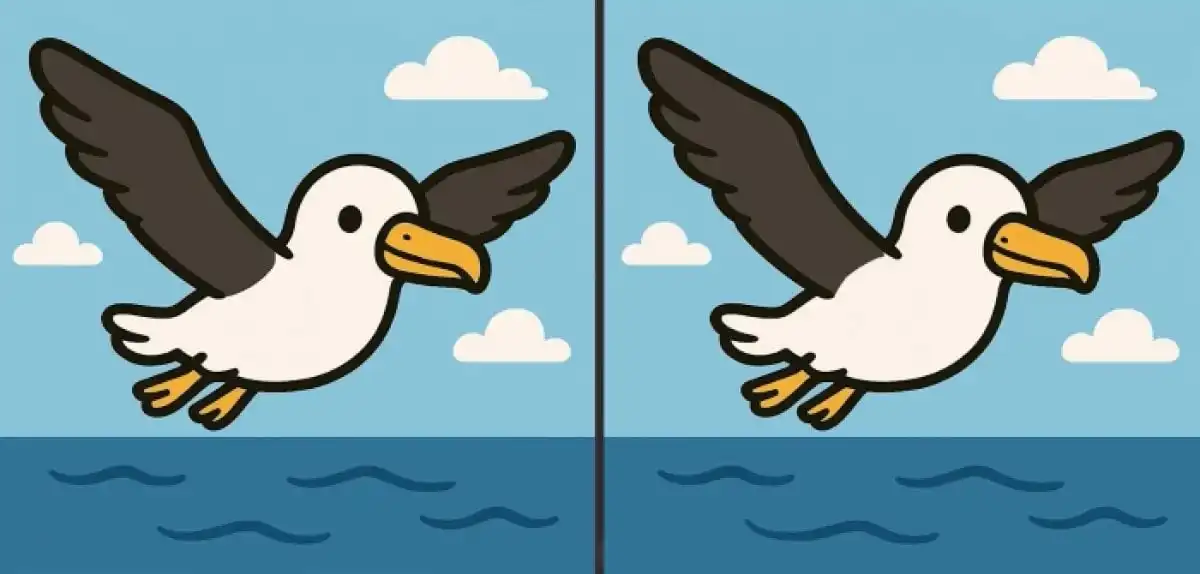 Μπροστά σου δύο φαινομενικά ίδιες εικόνες ενός πουλιού πάνω από το νερό. Ο στόχος: εντοπίστε τις τρεις μικρές διαφορές σε λιγότερο από μισό λεπτό. Το κλειδί είναι να εστιάσετε σε συγκεκριμένες ζώνες και να μην ξεγελιέστε από την ομοιότητα.