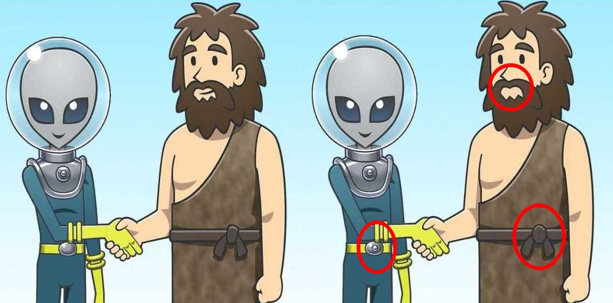 Μπροστά σου βρίσκονται δύο φαινομενικά πανομοιότυπες σκηνές με εξωγήινους και ανθρώπους των σπηλαίων. Η πρόκληση; Να εντοπίσεις τις τρεις μικρές, αλλά κρίσιμες, διαφορές τους σε μόλις 25 δευτερόλεπτα. Το κλειδί είναι να εστιάσεις σε λεπτομέρειες που συνήθως περνούν απαρατήρητες.