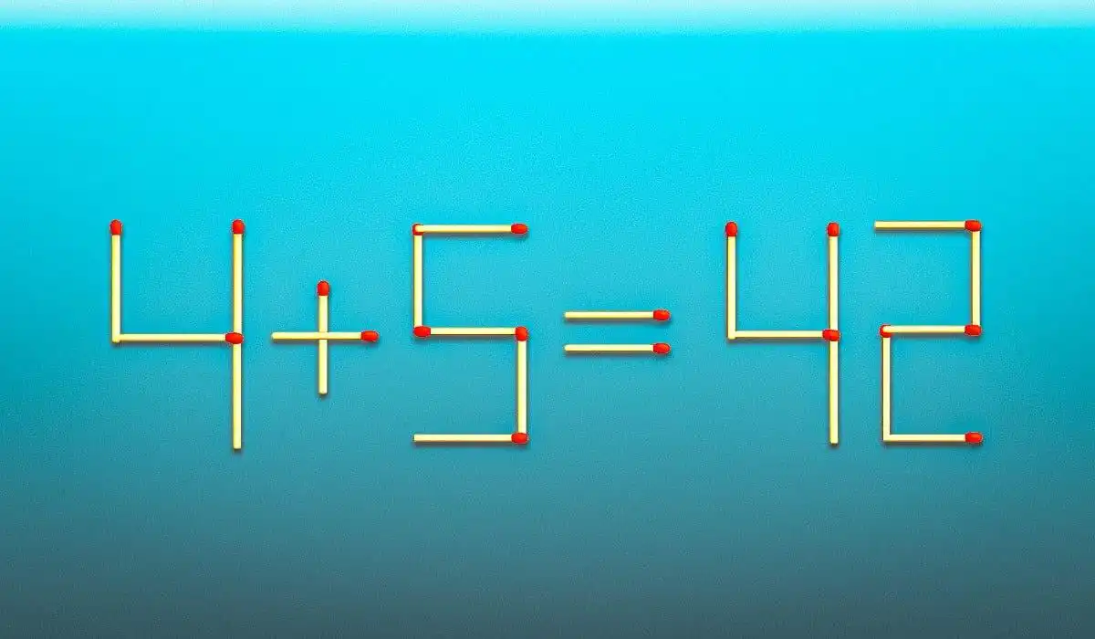 Έχετε μπροστά σας μια κλασική, αλλά πάντα απολαυστική, πρόκληση: μια εξίσωση από σπίρτα που είναι εμφανώς λάθος. Στην εικόνα βλέπετε 4 + 5 = 42. Η αποστολή σας είναι να την κάνετε σωστή μετακινώντας ακριβώς δύο σπίρτα. Έχετε μόνο 18 δευτερόλεπτα, μια πίεση που δοκιμάζει την ταχύτητα της λογικής σας και την ευελιξία της χωρικής σκέψης σας. Μην βιαστείτε να δείτε την απάντηση! Δοκιμάστε πρώτα να το λύσετε μόνοι σας. Σκεφτείτε: ποια σπίρτα, αν αλλάξουν θέση, μπορούν να δημιουργήσουν έναν νέο, έγκυρο αριθμό;
