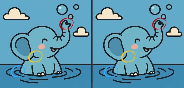 Μπροστά σας δύο φαινομενικά ίδιες εικόνες ενός ελέφαντα που παίζει στο νερό. Το μυστικό; Κρύβονται τρεις μικρές, αλλά σημαντικές, διαφορές. Μπορείτε να τις εντοπίσετε πριν περάσουν 23 δευτερόλεπτα; Η λύση βρίσκεται στην προσοχή στις λεπτομέρειες.