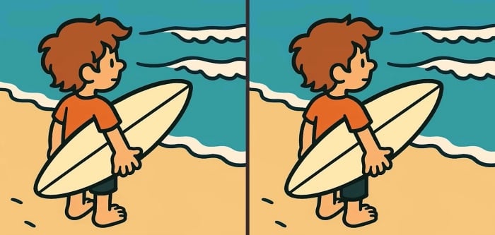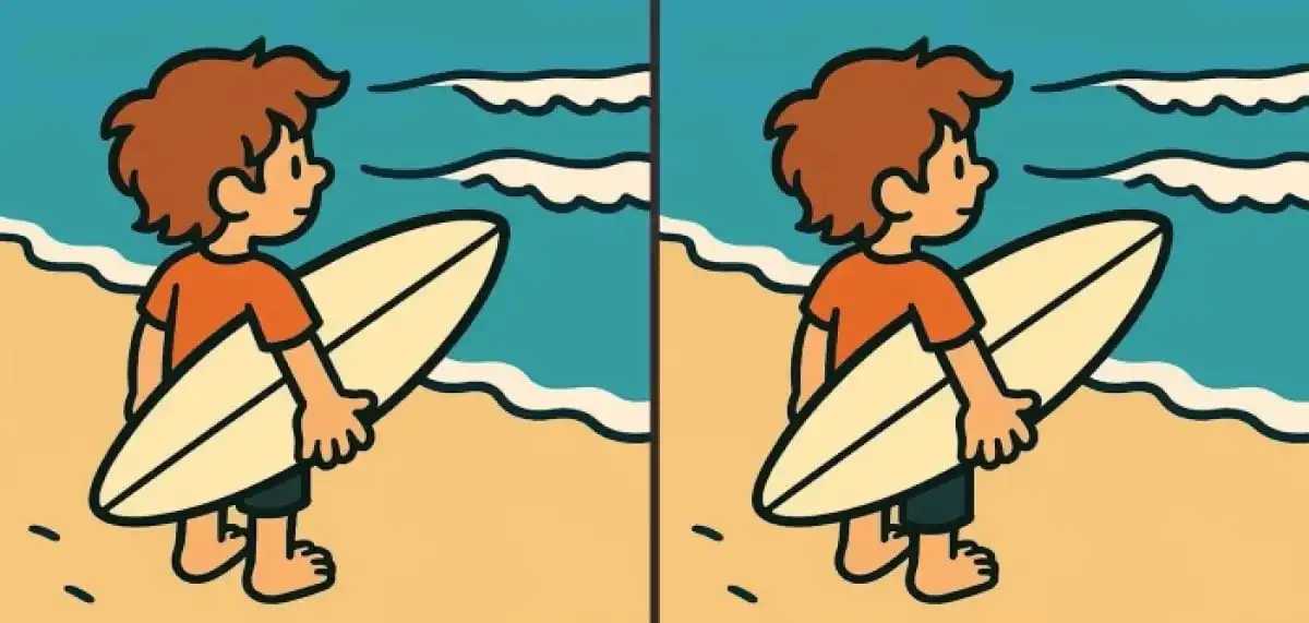 Μπροστά σου βρίσκονται δύο φαινομενικά ίδιες εικόνες ενός σέρφερ στη θάλασσα, αλλά τρεις μικρές διαφορές έχουν κρυφτεί με επιδεξιότητα. Μπορείς να τις εντοπίσεις σε λιγότερο από 43 δευτερόλεπτα; Το κλειδί είναι να εξετάσεις κάθε στοιχείο ξεχωριστά, από τον ουρανό μέχρι τα κύματα.
