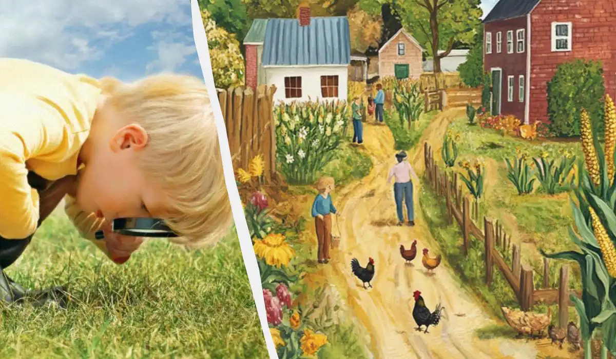 Λύση: Το λογικό λάθος είναι μια μπαγκέτα ψωμιού που μεγαλώνει στο χωράφι μαζί με τα καλαμπόκια! Σε μια ρεαλιστική σκηνή, τα ψωμιά δεν φυτρώνουν στα χωράφια σαν φυτά. Αυτό είναι ένα κλασικό παράδειγμα οπτικής ψευδαίσθησης και λογικής σύγχυσης, όπου ένα καθημερινό αντικείμενο τοποθετείται σε ένα εντελώς ακατάλληλο πλαίσιο, δημιουργώντας μια αίσθηση παραβίασης της πραγματικότητας.
