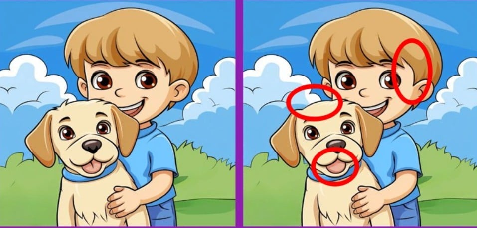 Μπροστά σου βρίσκονται δύο φαινομενικά πανομοιότυπες εικόνες ενός αγοριού με το σκυλί του. Το μυστικό; Κρύβονται τρεις μικρές διαφορές που απαιτούν απόλυτη προσοχή για να αποκαλυφθούν. Μπορείς να τις εντοπίσεις σε λιγότερο από 49 δευτερόλεπτα;