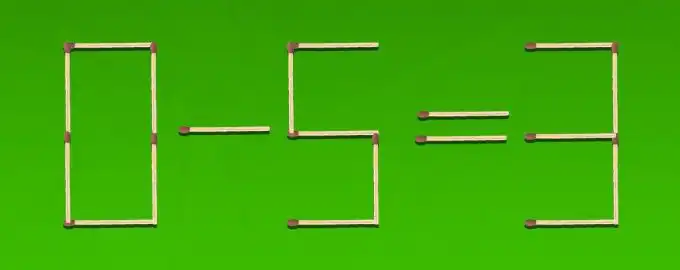 Η εξίσωση 0-5=3 είναι λανθασμένη και πρέπει να γίνει σωστή μετακινώντας ακριβώς δύο σπίρτα. Το κλειδί είναι να σκεφτείτε πώς μπορείτε να αλλάξετε ψηφία