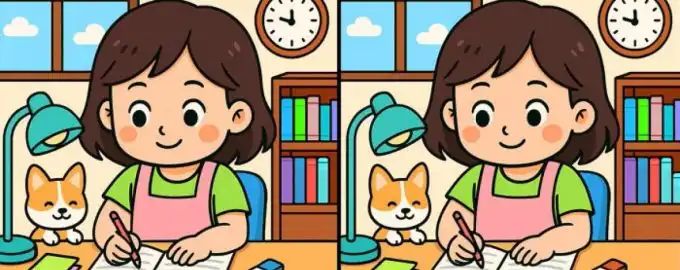 Μπροστά σου βρίσκονται δύο φαινομενικά πανομοιότυπες εικόνες μιας φοιτήτριας στο γραφείο της. Ο στόχος είναι να εντοπίσεις τις τρεις μικρές διαφορές τους