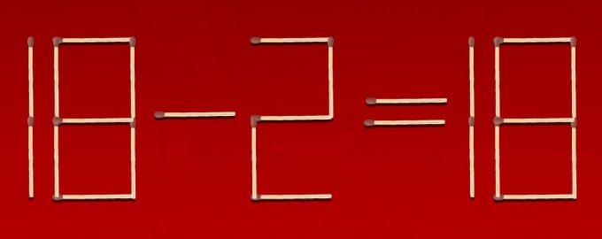 Μπορείτε να διορθώσετε τη λάθος μαθηματική ισότητα 18-2=18 μετακινώντας μόνο ένα σπίρτο; Το κλειδί βρίσκεται στο να δείτε τους αριθμούς όχι μόνο ως ψηφία