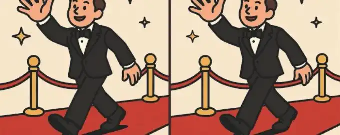 Ένα κλασικό παζλ οπτικής προσοχής: δύο φαινομενικά ίδιες εικόνες ενός άνδρα σε κόκκινο χαλί κρύβουν τρεις μικρές διαφορές. Μπορείς να τις εντοπίσεις πριν