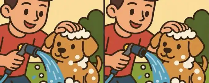 Μπορείτε να εντοπίσετε τρεις μικροσκοπικές διαφορές σε δύο φαινομενικά ίδιες σκηνές ενός αγοριού που κάνει μπάνιο στο σκυλί του, σε λιγότερο από μισό λεπτό;