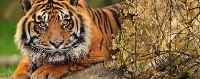 Σε ένα πυκνό δάσος από θάμνους κρύβεται μια τίγρη. Η εξαιρετική της καμουφλάζ την κάνει σχεδόν αόρατη, αλλά ένα μικρό λεπτομέρεια θα αποκαλύψει τη θέση